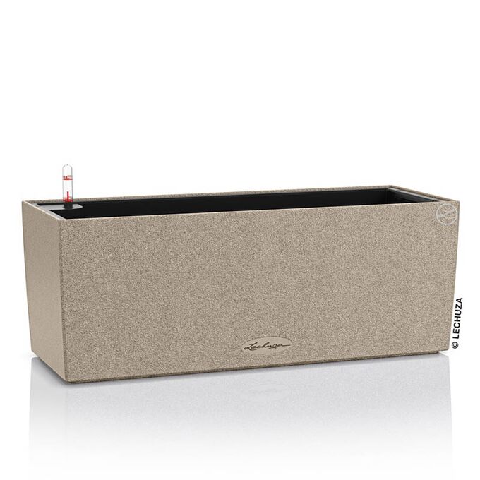Ζαρντινιέρα με κορυφαία ποιότητα κατασκευής και μοναδικό design (ανάγλυφη φυσική πέτρα μπεζ χρώματος), Η συσκευασία περιλαμβάνει την ζαρντινιέρα, το εσωτερικό δοχείο φύτευσης, το σύστημα αυτοποτισμού, τον δείκτη νερού και το lechuza pon. Απόλυτα εργονομική χάρη στις βυθιζόμενες λαβές (με δίπλωμα ευρεσιτεχνίας), προσφέρει τη δυνατότητα για εύκολη αλλαγή των δοχείων φύτευσης διευκολύνοντας την αλλαγή φυτών, τη μεταφύτευση, το κλάδεμα των ριζών και το ξέπλυμα των φύλλων ενώ διαθέτει και βαλβίδα αποστράγγισης στον πάτο για να απορρέει το πλεονάζον νερό όταν τοποθετείται σε εξωτερικό χώρο ενώ το σύστημα αυτοποτισμού λειτουργεί ευεργετικά για το φυτό καθώς δίνει την απαραίτητη ποσότητα νερού που έχει ανάγκη το φυτό αλλά και για τον χρήστη, απαλλάσοντας τον από την καθημερινή φροντίδα του φυτού. Μπορεί να τοποθετηθεί πάνω σε οποιαδήποτε επιφάνεια, σε τραπέζι, πεζούλι, στο έδαφος αλλά και σε κάγκελα μπαλκονιού ή στον τοίχο σε συνδυασμό με τα άγκιστρα μπαλονιού LECHUZA. Το δοχείο φύτευσης έχει χωρητικότητα χώματος 8 και νερού 3 λίτρων και προσφέρει ιδανικό περιβάλλον για την ανάπτυξη φυτών με ύψος έως 30 και ριζικό σύστημα έως 12 εκατοστά. Πολύ ανθεκτική και ελαφριά κατασκευή, αντέχει στις ακραίες μεταβολές της θερμοκρασίας και την υπεριώδη ακτινοβολία UV. Αποτελεί εξαιρετική διακοσμητική επιλογή για τον κήπο, την αυλή, το σαλόνι κ.α απευθυνόμενη σε όσους θέλουν να ξεχωρίζουν συνδυάζοντας αρμονικά υψηλή αισθητική και λειτουργικότητα.