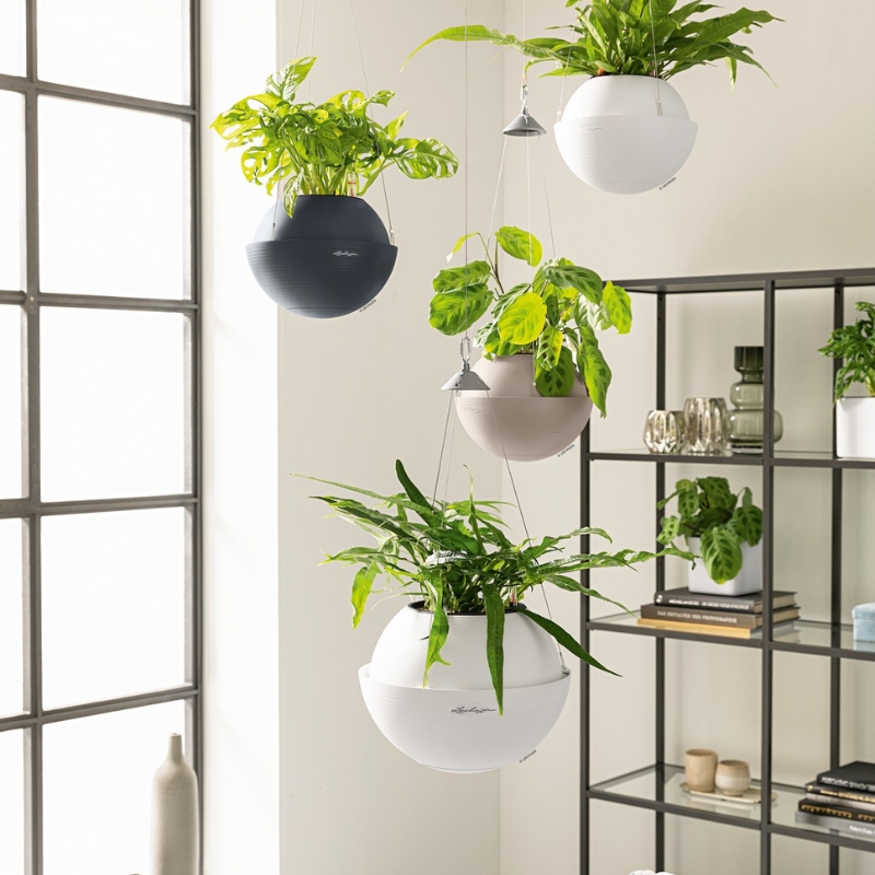 Οι κρεμαστές γλάστρες LECHUZA BOLA είναι ιδανική επιλογή για μικρούς εσωτερικούς χώρους και μπαλκόνια καθώς περιλαμβάνουν ανθεκτικό ανοξείδωτο σύστημα ανάρτησης 62 cm με αντοχή βάρους έως 3,5 κιλά με το οποίο τα φυτά τοποθετούνται σε ύψος που μπορείτε να τα απολαύσετε εύκολα και χωρίς να καταλαμβάνουν χώρο στο δάπεδο.