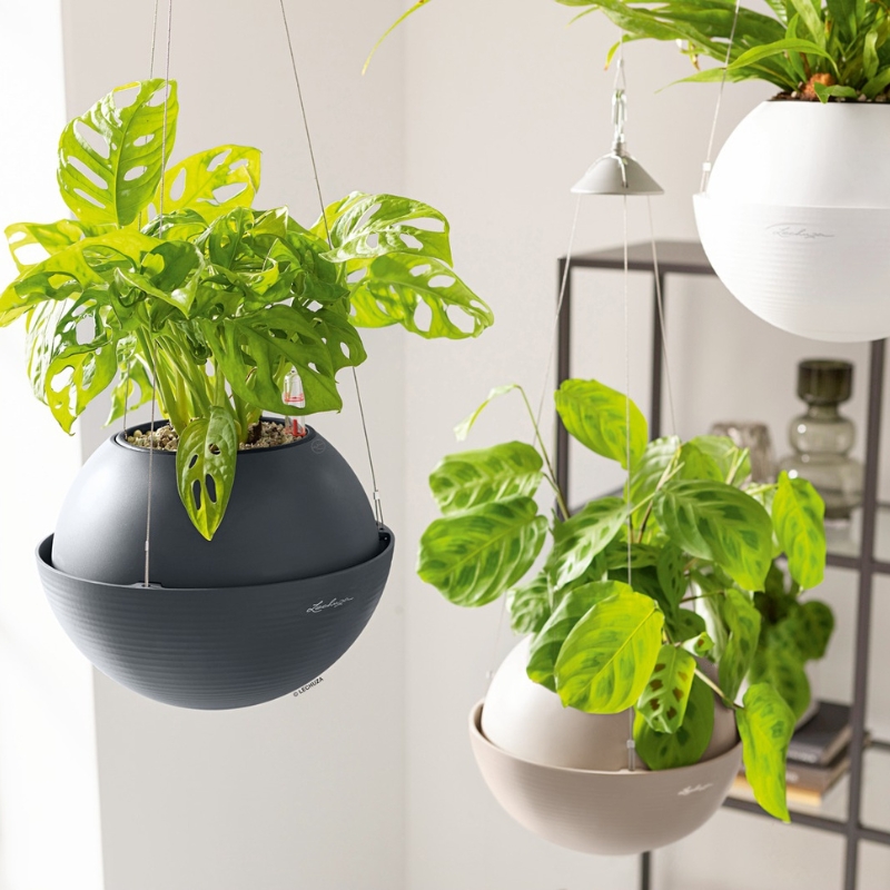 Οι κρεμαστές γλάστρες LECHUZA BOLA είναι ιδανική επιλογή για μικρούς εσωτερικούς χώρους και μπαλκόνια καθώς περιλαμβάνουν ανθεκτικό ανοξείδωτο σύστημα ανάρτησης 62 cm με αντοχή βάρους έως 3,5 κιλά με το οποίο τα φυτά τοποθετούνται σε ύψος που μπορείτε να τα απολαύσετε εύκολα και χωρίς να καταλαμβάνουν χώρο στο δάπεδο.