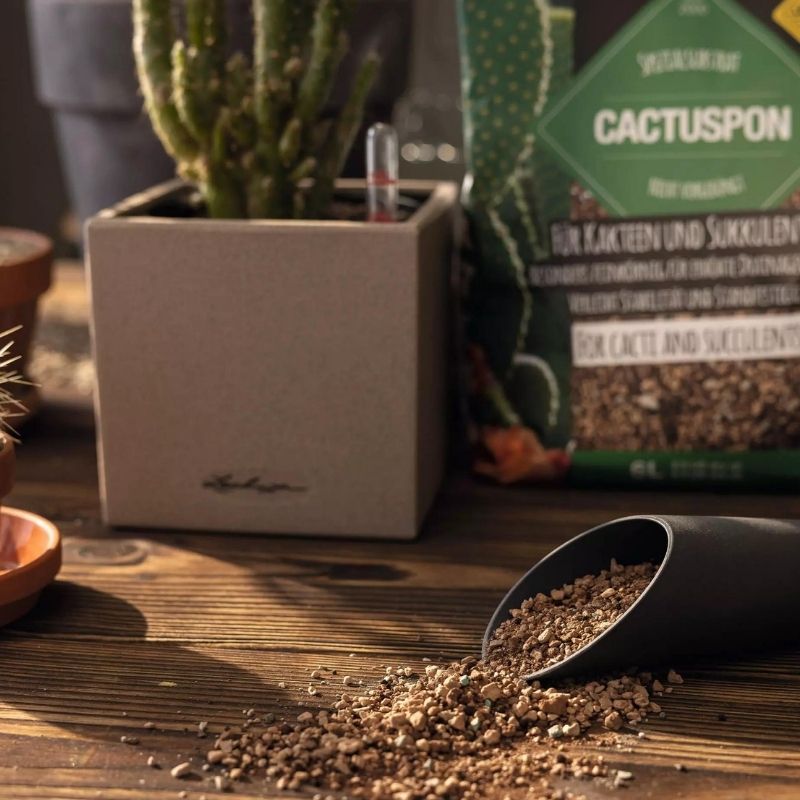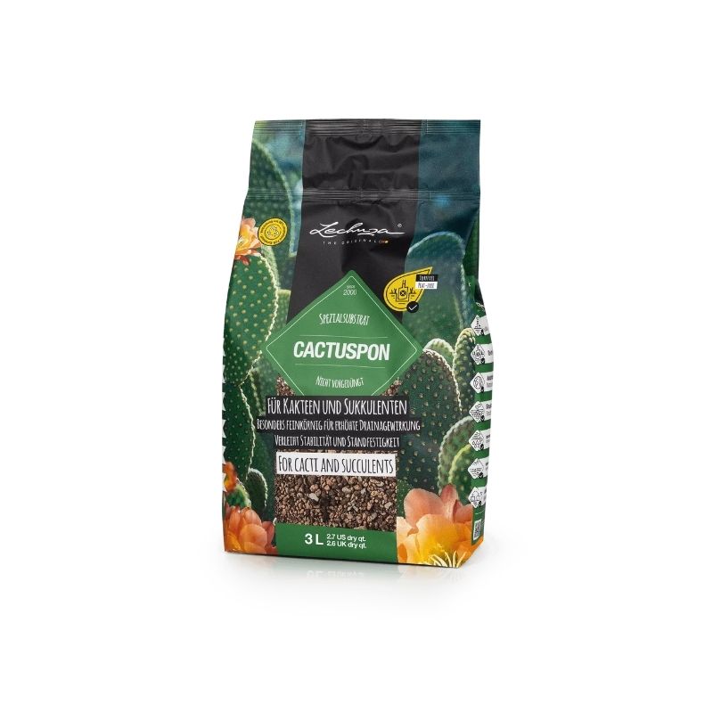 Το υπόστρωμα φύτευσης LECHUZA CACTUSPON αποτελείται από πέτρα, άμμο, ζεόλιθο και άνθρακα (ορυκτά, δομικά σταθερά).