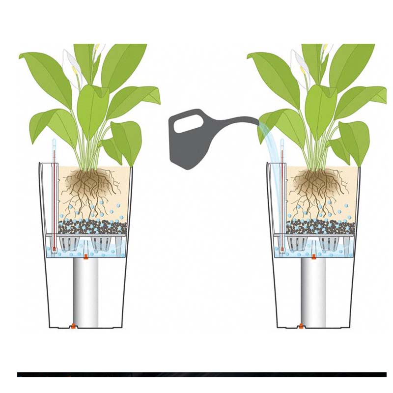 Το σύστημα αυτοποτισμού LECHUZA φροντίζει τα φυτά έως 12 εβδομάδες και εγγυάται τη λήψη της κατάλληλης ποσότητας νερού και θρεπτικών συστατικών για την άριστη ανάπτυξή τους.