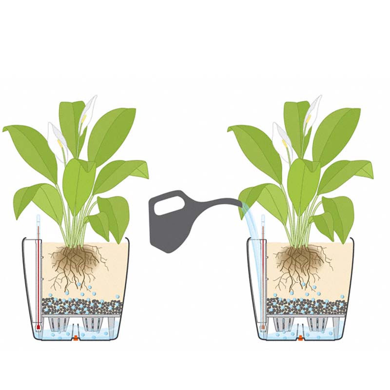 Το σύστημα αυτοποτισμού LECHUZA φροντίζει τα φυτά έως 12 εβδομάδες και εγγυάται τη λήψη της κατάλληλης ποσότητας νερού και θρεπτικών συστατικών για την άριστη ανάπτυξή τους.