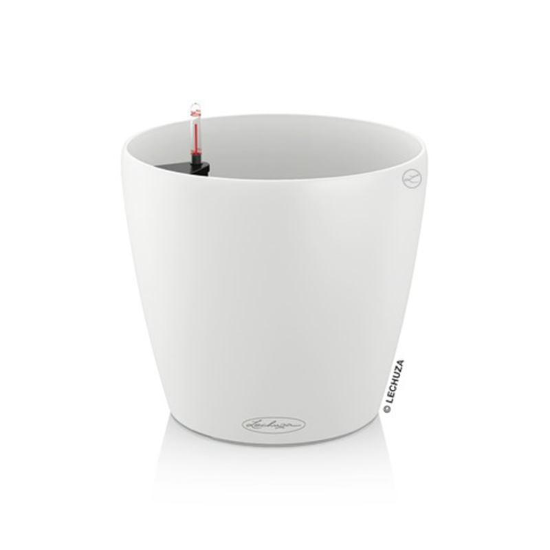 Στρογγυλή επιδαπέδια γλάστρα διαμέτρου Ø34.5 εκατοστών με κορυφαία ποιότητα κατασκευής και μοναδικό σχεδιασμό λευκού χρώματος. Η συσκευασία περιλαμβάνει τη γλάστρα, το σύστημα αυτοποτισμού και το lechuza-pon. Με λειτουργία υπερχείλισης και βαλβίδα αποστράγγισης στη βάση για να απορρέει το πλεονάζον νερό όταν τοποθετείται σε εξωτερικό χώρο, προσφέρει υγειές περιβάλλον στα φυτά ενώ το σύστημα αυτοποτισμού λειτουργεί ευεργετικά τόσο για το φυτό καθώς δίνει την απαραίτητη ποσότητα νερού στο φυτό όσο και για τον χρήστη, απαλλάσοντας τον από την καθημερινή φροντίδα του φυτού. Η γλάστρα έχει χωρητικότητα χώματος 17 και νερού 3,7 λίτρα και προσφέρει ιδανικό περιβάλλον για την ανάπτυξη φυτών με ύψος έως 90 και ριζικό σύστημα έως και 22,5 εκατοστά. Πολύ ανθεκτική και ελαφριά κατασκευή, αντέχει στις μεταβολές της θερμοκρασίας και την υπεριώδη ακτινοβολία UV. Η γλάστρα Classico 35 αποτελεί εξαιρετική επιλογή για το σπίτι ή και τον χώρο εργασίας, φωτίζοντας τον κάθε χώρο με την κλασσική της όψη.