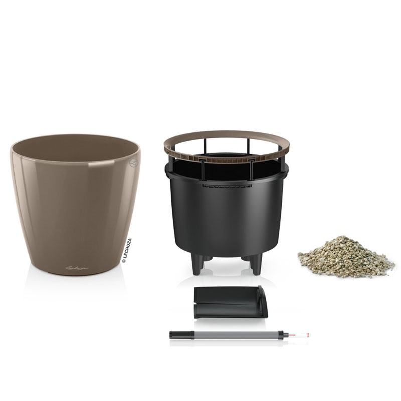 LECHUZA Classico 43 LS Premium Επιδαπέδια Γλάστρα Ø43.5x39.5cm Αυτοποτιζόμενη με Δοχείο Φύτευσης Γκρι-Καφέ Γυαλιστερή Γερμανίας