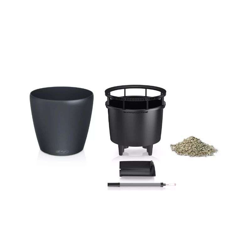 Η συσκευασία περιλαμβάνει τη γλάστρα, το εσωτερικό δοχείο φύτευσης με αναδιπλούμενο δακτύλιο που χρησιμεύει ως λαβή, το σύστημα αυτοποτίσματος και το lechuza-pon. Απόλυτα εργονομική χάρη στη βυθιζόμενη περιμετρική λαβή (με δίπλωμα ευρεσιτεχνίας), προσφέρει τη δυνατότητα για εύκολη αλλαγή των δοχείων φύτευσης διευκολύνοντας την αλλαγή φυτών, τη μεταφύτευση, το κλάδεμα των ριζών και το ξέπλυμα των φύλλων ενώ διαθέτει και βαλβίδα αποστράγγισης στη βάση της γλάστρας για να απορρέει το πλεονάζον νερό.