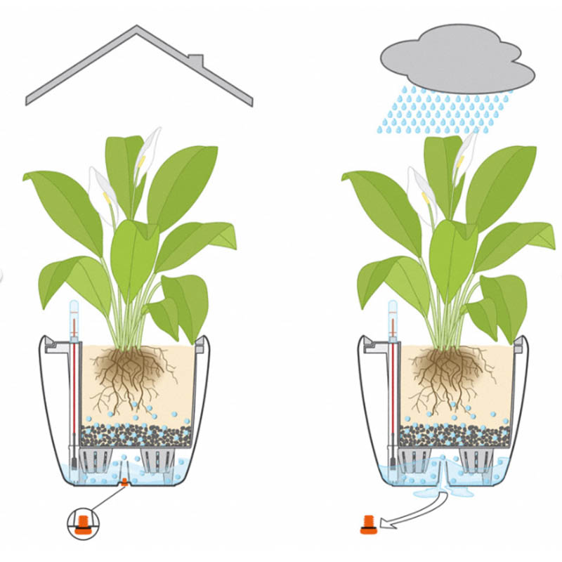 Το σύστημα αυτοποτισμού LECHUZA φροντίζει τα φυτά έως 12 εβδομάδες και εγγυάται τη λήψη της κατάλληλης ποσότητας νερού και θρεπτικών συστατικών για την άριστη ανάπτυξή τους.