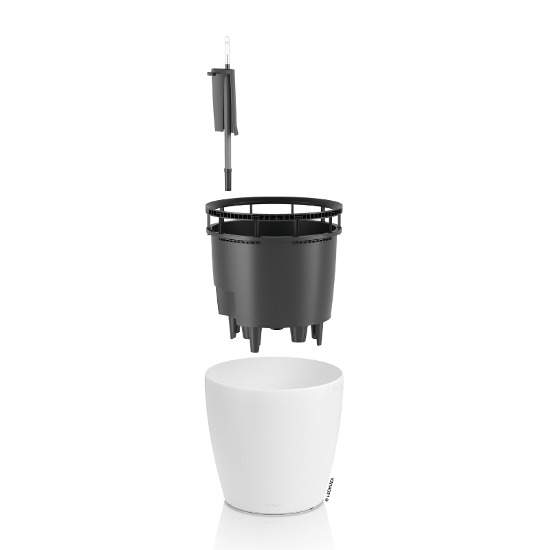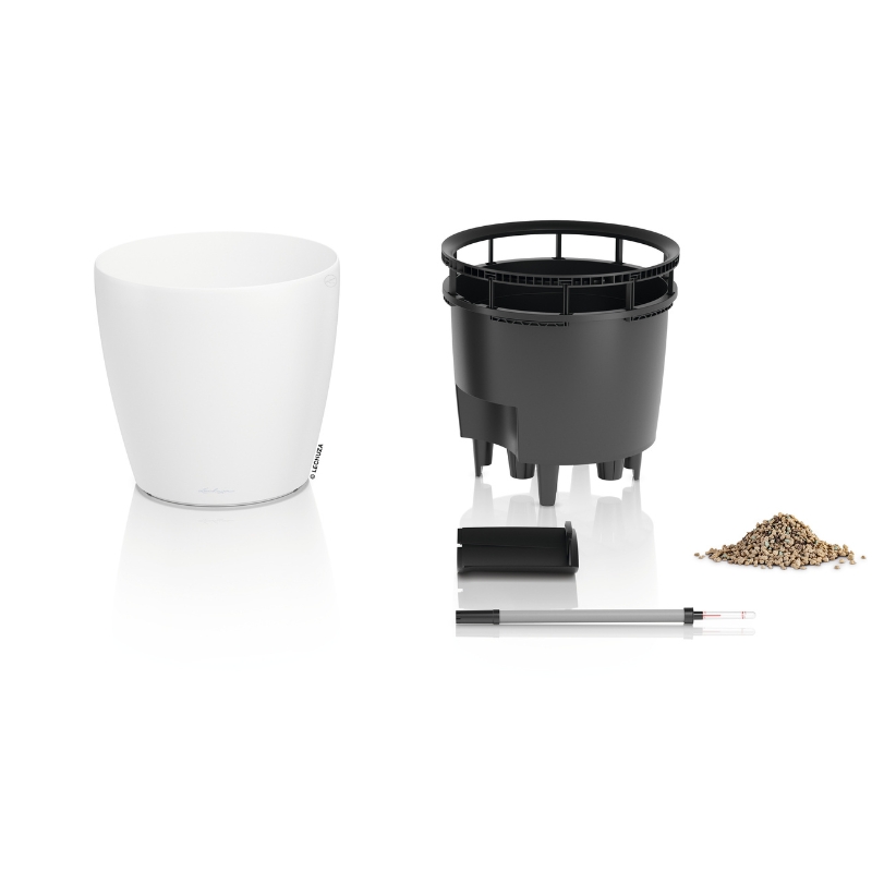 Η συσκευασία περιλαμβάνει τη γλάστρα, το εσωτερικό δοχείο φύτευσης με αναδιπλούμενο δακτύλιο που χρησιμεύει ως λαβή, το σύστημα αυτοποτίσματος και το lechuza-pon. Απόλυτα εργονομική χάρη στη βυθιζόμενη περιμετρική λαβή (με δίπλωμα ευρεσιτεχνίας), προσφέρει τη δυνατότητα για εύκολη αλλαγή των δοχείων φύτευσης διευκολύνοντας την αλλαγή φυτών, τη μεταφύτευση, το κλάδεμα των ριζών και το ξέπλυμα των φύλλων ενώ διαθέτει και βαλβίδα αποστράγγισης στη βάση της γλάστρας για να απορρέει το πλεονάζον νερό.