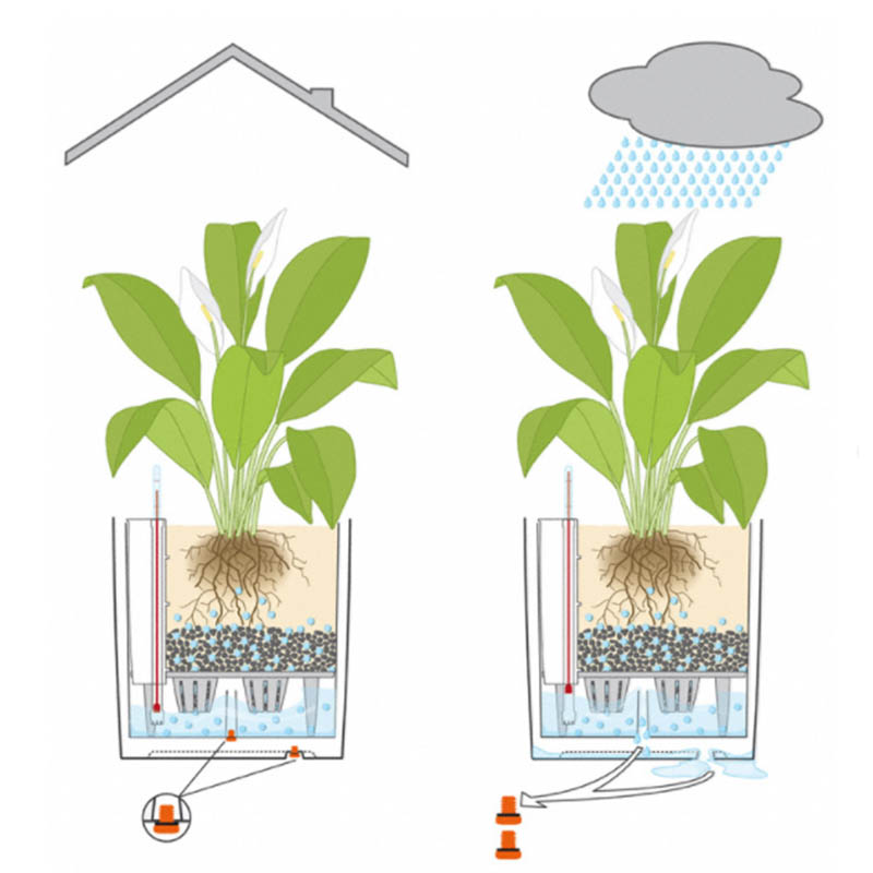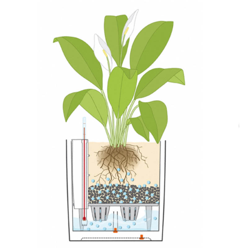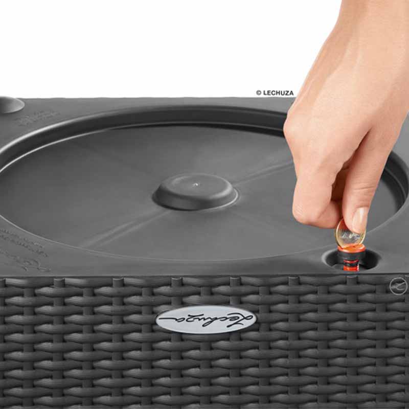 Το σύστημα αυτοποτισμού LECHUZA φροντίζει τα φυτά έως 12 εβδομάδες και εγγυάται τη λήψη της κατάλληλης ποσότητας νερού και θρεπτικών συστατικών για την άριστη ανάπτυξή τους.