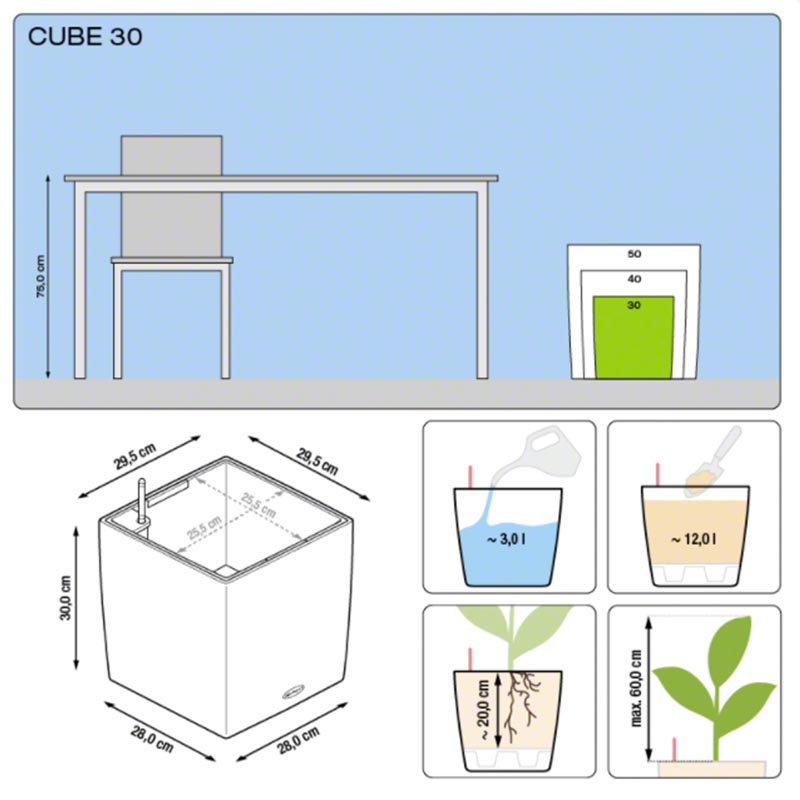 Το σύστημα αυτοποτισμού LECHUZA φροντίζει τα φυτά έως 12 εβδομάδες και εγγυάται τη λήψη της κατάλληλης ποσότητας νερού και θρεπτικών συστατικών για την άριστη ανάπτυξή τους.