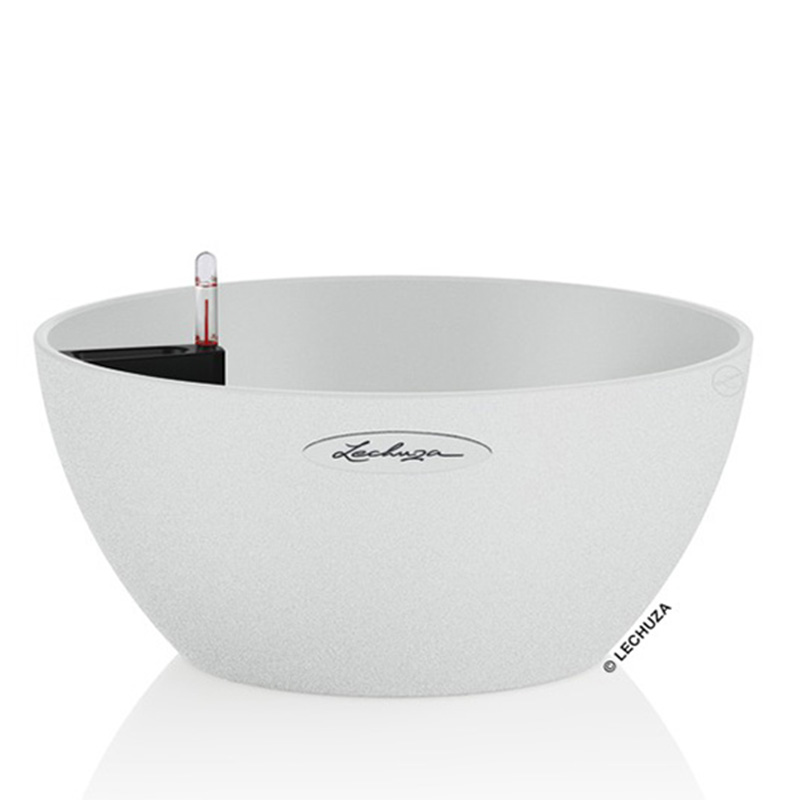 LECHUZA Cubeto Color40 Επιτραπέζια Γλάστρα Ø40x18.3cm Αυτοποτιζόμενη με Δοχείο Φύτευσης 11.5lt QUARTZ WHITE με Όψη Πέτρας Γερμανίας