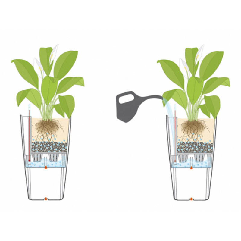 Το σύστημα αυτοποτισμού LECHUZA φροντίζει τα φυτά έως 12 εβδομάδες και εγγυάται τη λήψη της κατάλληλης ποσότητας νερού και θρεπτικών συστατικών για την άριστη ανάπτυξή τους.