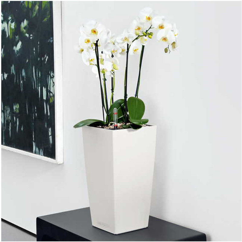 LECHUZA CUBICO 22 Premium Επιτραπέζια Γλάστρα 22x22x41cm Αυτοποτιζόμενη με Δοχείο Φύτευσης Λευκή Γυαλιστερή Γερμανίας