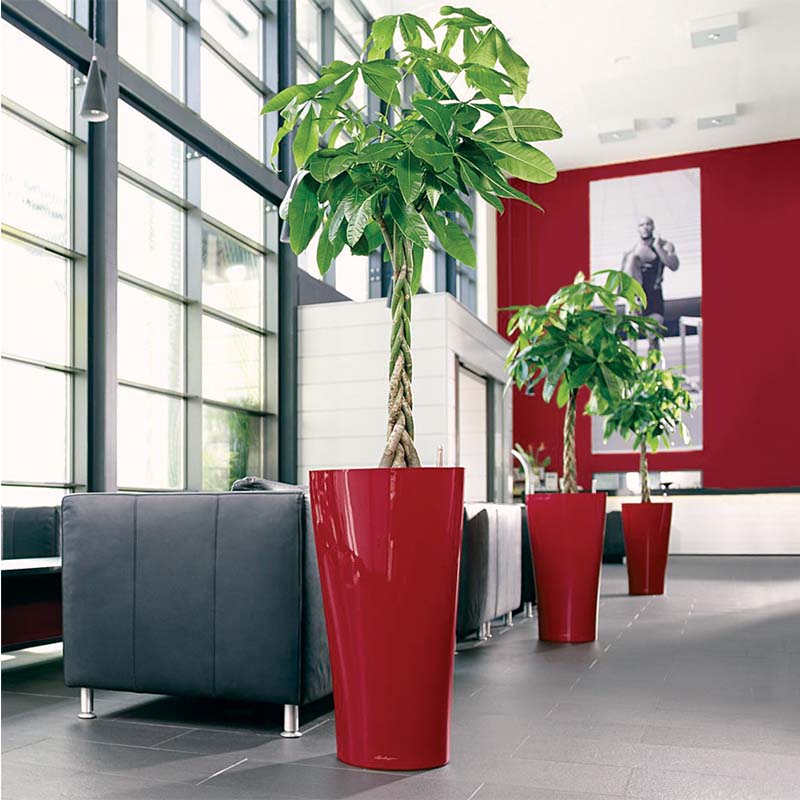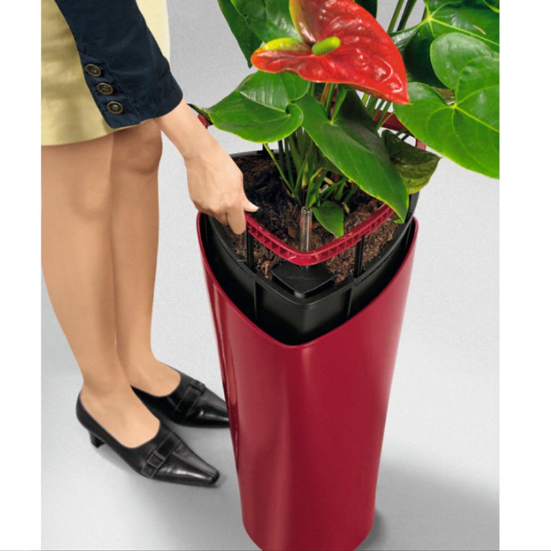 Επιδαπέδια γλάστρα με κορυφαία ποιότητα κατασκευής και μοναδικό καμπυλωτό σχεδιασμό σε μπορντό high gloss χρώμα. Η συσκευασία περιλαμβάνει τη γλάστρα, το εσωτερικό δοχείο φύτευσης, το σύστημα αυτοποτισμού και το lechuza pon. Απόλυτα εργονομική χάρη στη βυθιζόμενη περιμετρική λαβή (με δίπλωμα ευρεσιτεχνίας) προσφέρει τη δυνατότητα για εύκολη αλλαγή των δοχείων φύτευσης διευκολύνοντας την αλλαγή φυτών, τη μεταφύτευση, το κλάδεμα των ριζών και το ξέπλυμα των φύλλων ενώ διαθέτει και βαλβίδα αποστράγγισης στη βάση της γλάστρας για να απορρέει το πλεονάζον νερό όταν τοποθετείται σε εξωτερικό χώρο.Το σύστημα αυτοποτισμού λειτουργεί ευεργετικά για το φυτό καθώς του παρέχει την απαραίτητη ποσότητα νερού που χρειάζεται ενώ είναι εξίσου ωφέλιμο και για τον χρήστη καθώς τον απαλλάσσει από την καθημερινή ευθύνη φροντίδας του φυτού. Το δοχείο φύτευσης έχει χωρητικότητα χώματος 8 και νερού 2,5 λίτρων και προσφέρει ιδανικό περιβάλλον για την ανάπτυξη φυτών με ύψος έως 60 και ριζικό σύστημα έως 18 εκατοστά. Πολύ ανθεκτική και ελαφριά κατασκευή, αντέχει στις μεταβολές της θερμοκρασίας και την υπεριώδη ακτινοβολία UV. Η καμπυλωτή γραμμή της σειράς Delta σε σχήμα στήλης που καταλήγει σε ένα κομψό, σμιλεμένο τρίγωνο αποτελεί αποδεδειγμένα την απόλυτη διακοσμητική επιλογή για δημόσιους χώρους, ξενοδοχεία κ.α προσδίδοντάς τους ένα ιδιαίτερο ύφος που προσελκύει τα βλέμματα.