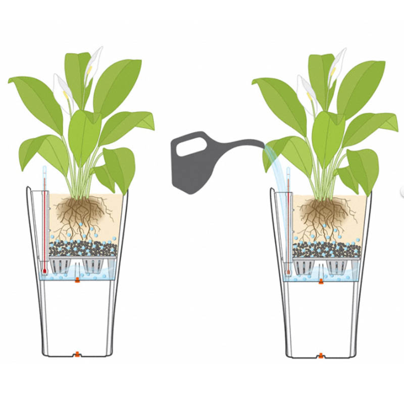 Το σύστημα αυτοποτισμού LECHUZA φροντίζει τα φυτά έως 12 εβδομάδες και εγγυάται τη λήψη της κατάλληλης ποσότητας νερού και θρεπτικών συστατικών για την άριστη ανάπτυξή τους.
