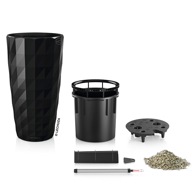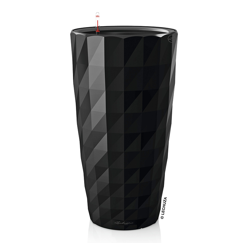 LECHUZA DIAMANTE 40 PREMIUM Ø40x75cm Αυτοποτιζόμενη με Δοχείο Φύτευσης Μαύρη High Gloss Γερμανίας