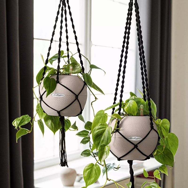 Κρεμαστή θήκη γλάστρας εξαιρετικής ποιότητας από 100% βαμβάκι. Η τεχνοτροπία της μακραμέ ανάρτησης (μορφή κλωστοϋφαντουργίας που κάνουμε κόμπους με τα χέρια μας) με μήκος 90 cm έρχεται να μεταμορφώσει τις γλάστρες PURO 20, CUBE 14 ή CANTO Stone 14 σε ένα μοντέρνο κρεμαστό καλάθι.