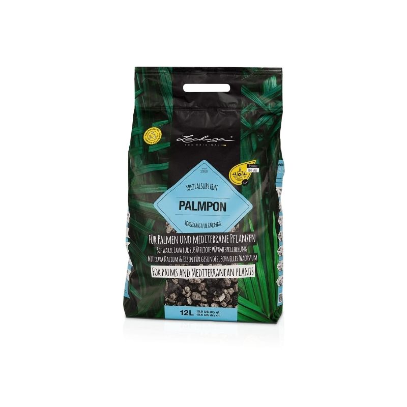 Το υπόστρωμα φύτευσης LECHUZA PALMPON αποτελείται από μαύρη λάβα, ελαφρόπετρα, φλοιό πεύκου, ζεόλιθο (ορυκτά, δομικά σταθερά) και είναι εργοστασιακά εμπλουτισμένο με ένα λίπασμα βραδείας αποδέσμευσης το οποίο παρέχει στα φυτά θρεπτικά συστατικά. Περιέχει επίσης κάλιο και σίδηρο για μεγαλύτερη ανάπτυξη.