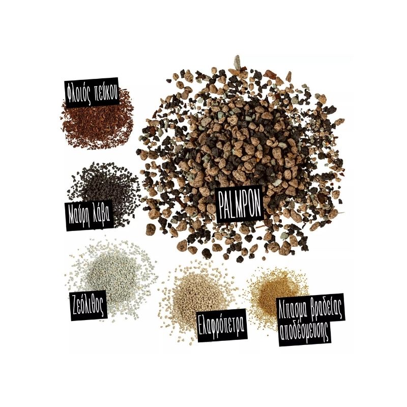 Μείγμα ορυκτών συστατικών (ελαφρόπετρα, μαύρη λάβα, ζεόλιθος, φλοιός πεύκου)
