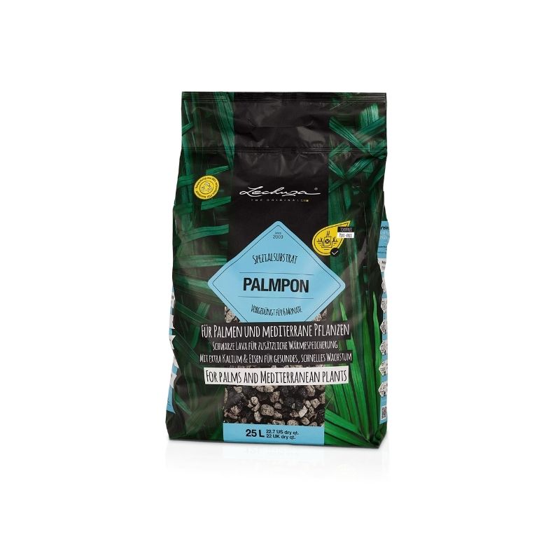 Το υπόστρωμα φύτευσης LECHUZA PALMPON αποτελείται από μαύρη λάβα, ελαφρόπετρα, φλοιό πεύκου, ζεόλιθο (ορυκτά, δομικά σταθερά) και είναι εργοστασιακά εμπλουτισμένο με ένα λίπασμα βραδείας αποδέσμευσης το οποίο παρέχει στα φυτά θρεπτικά συστατικά. Περιέχει επίσης κάλιο και σίδηρο για μεγαλύτερη ανάπτυξη.