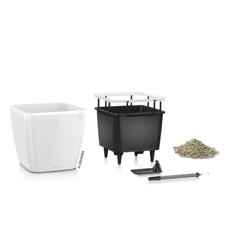 LECHUZA QUADRO 35 LS Premium Επιδαπέδια Γλάστρα 35.5x35.5x32.5cm ΑΥΤΟΠΟΤΙΖΟΜΕΝΗ με Δοχείο Φύτευσης Λευκή Γυαλιστερή Γερμανίας