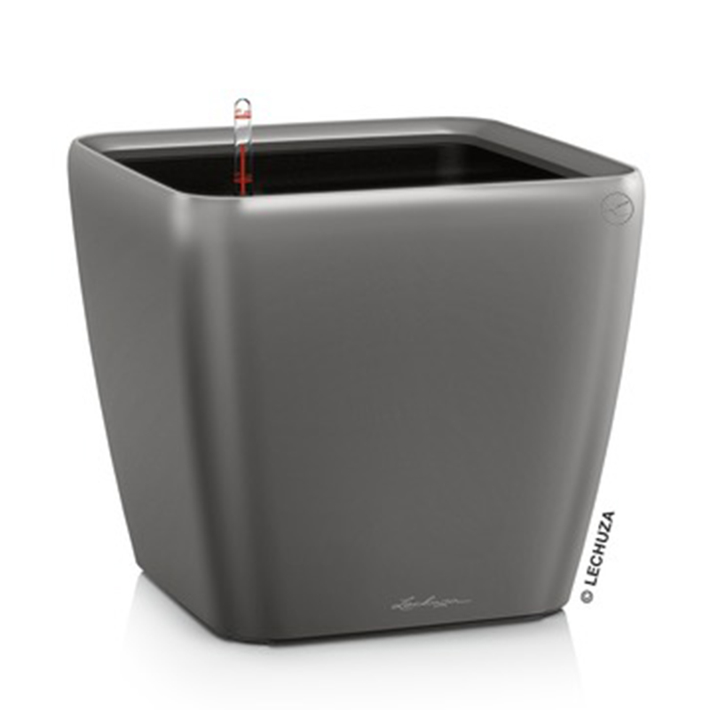 Επιδαπέδια γλάστρα με κορυφαία ποιότητα κατασκευής και μοναδικό σχεδιασμό σε ανθρακί high gloss χρώμα. Η συσκευασία περιλαμβάνει τη γλάστρα, το εσωτερικό δοχείο φύτευσης, το σύστημα αυτόματου ποτίσματος και το lechuza-pon. Απόλυτα εργονομική χάρη στη βυθιζόμενη περιμετρική λαβή (με δίπλωμα ευρεσιτεχνίας), προσφέρει τη δυνατότητα για εύκολη αλλαγή των δοχείων φύτευσης διευκολύνοντας την αλλαγή φυτών, τη μεταφύτευση, το κλάδεμα των ριζών και το ξέπλυμα των φύλλων ενώ διαθέτει και βαλβίδα αποστράγγισης στη βάση της γλάστρας για να απορρέει το πλεονάζον νερό όταν τοποθετείται σε εξωτερικό χώρο.Το σύστημα αυτοποτισμού λειτουργεί ευεργετικά για το φυτό καθώς του παρέχει την απαραίτητη ποσότητα νερού που χρειάζεται ενώ είναι εξίσου ωφέλιμο και για τον χρήστη καθώς τον απαλλάσσει από την καθημερινή ευθύνη φροντίδας του φυτού. Το δοχείο φύτευσης έχει χωρητικότητα χώματος 53 και νερού 14,5 λίτρων και προσφέρει ιδανικό περιβάλλον για την ανάπτυξη φυτών με ύψος έως 120 και ριζικό σύστημα έως 31,5 εκατοστά. Πολύ ανθεκτική και ελαφριά κατασκευή, αντέχει στις μεταβολές της θερμοκρασίας και την υπεριώδη ακτινοβολία UV. Η επιτραπέζια γλάστρα LECHUZA Quadro 50 LS αποτελεί εξαιρετική διακοσμητική επιλογή για το σπίτι, τον εργασιακό χώρο, μαγαζιά εστίασης κ.α καθώς η λαμπερή της όψη και το κομψό της design μπορεί να τοποθετηθεί και να αναδείξει οποιόδηποτε χώρο, συνδυάζοντας αρμονικά υψηλή αισθητική και λειτουργικότητα.