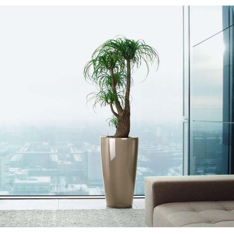 Επιδαπέδια στρογγυλή γλάστρα με κορυφαία ποιότητα κατασκευής και μοναδικό σχεδιασμό σε γκρι καφέ high gloss χρώμα.Η συσκευασία περιλαμβάνει τη γλάστρα, το εσωτερικό δοχείο φύτευσης, το σύστημα αυτοποτισμού και το lechuza-pon. Απόλυτα εργονομική χάρη στη βυθιζόμενη περιμετρική λαβή (με δίπλωμα ευρεσιτεχνίας) προσφέρει τη δυνατότητα για εύκολη αλλαγή των δοχείων φύτευσης διευκολύνοντας την αλλαγή φυτών, τη μεταφύτευση, το κλάδεμα των ριζών και το ξέπλυμα των φύλλων ενώ διαθέτει και βαλβίδα αποστράγγισης στη βάση της γλάστρας για να απορρέει το πλεονάζον νερό όταν τοποθετείται σε εξωτερικό χώρο.Το σύστημα αυτοποτισμού λειτουργεί ευεργετικά για το φυτό καθώς του παρέχει την απαραίτητη ποσότητα νερού που χρειάζεται ενώ είναι εξίσου ωφέλιμο και για τον χρήστη καθώς τον απαλλάσσει από την καθημερινή ευθύνη φροντίδας του φυτού. Το δοχείο φύτευσης έχει χωρητικότητα χώματος 22 και νερού 5,6 λίτρων και προσφέρει ιδανικό περιβάλλον για την ανάπτυξη φυτών με ύψος έως 100 και ριζικό σύστημα έως 26,5 εκατοστά. Πολύ ανθεκτική και ελαφριά κατασκευή, αντέχει στις μεταβολές της θερμοκρασίας και την υπεριώδη ακτινοβολία UV. Η επιδαπέδια γλάστρα LECHUZA RONDO 40 Premium αποτελεί εξαιρετική διακοσμητική επιλογή για επαγγελματικούς χώρους, μαγαζιά εστίασης, ξενοδοχεία κ.α συνδυάζοντας αρμονικά υψηλή αισθητική και λειτουργικότητα.