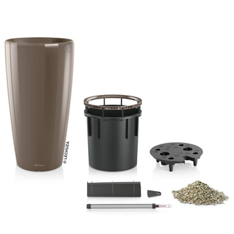 LECHUZA RONDO 40 Premium Επιδαπέδια Γλάστρα Ø40x75cm ΑΥΤΟΠΟΤΙΖΟΜΕΝΗ με Δοχείο Φύτευσης Γκρι-Καφέ Γυαλιστερή Γερμανίας