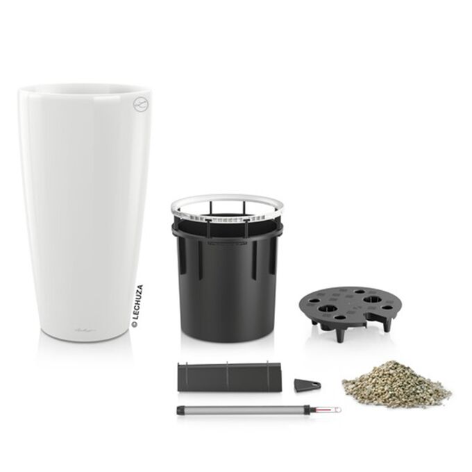 LECHUZA RONDO 40 Premium Επιδαπέδια Γλάστρα Ø40x75cm ΑΥΤΟΠΟΤΙΖΟΜΕΝΗ με Δοχείο Φύτευσης Λευκή Γυαλιστερή Γερμανίας