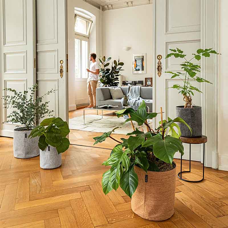 Γλάστρα με κορυφαία ποιότητα κατασκευής και μοναδικό σχεδιασμό με φυσική όψη τσόχας σε σκούρο γκρι χρώμα, της σειράς TRENDCOVER με φυσικές επιφάνειες για ακόμη περισσότερο στυλ στους εσωτερικούς χώρους.