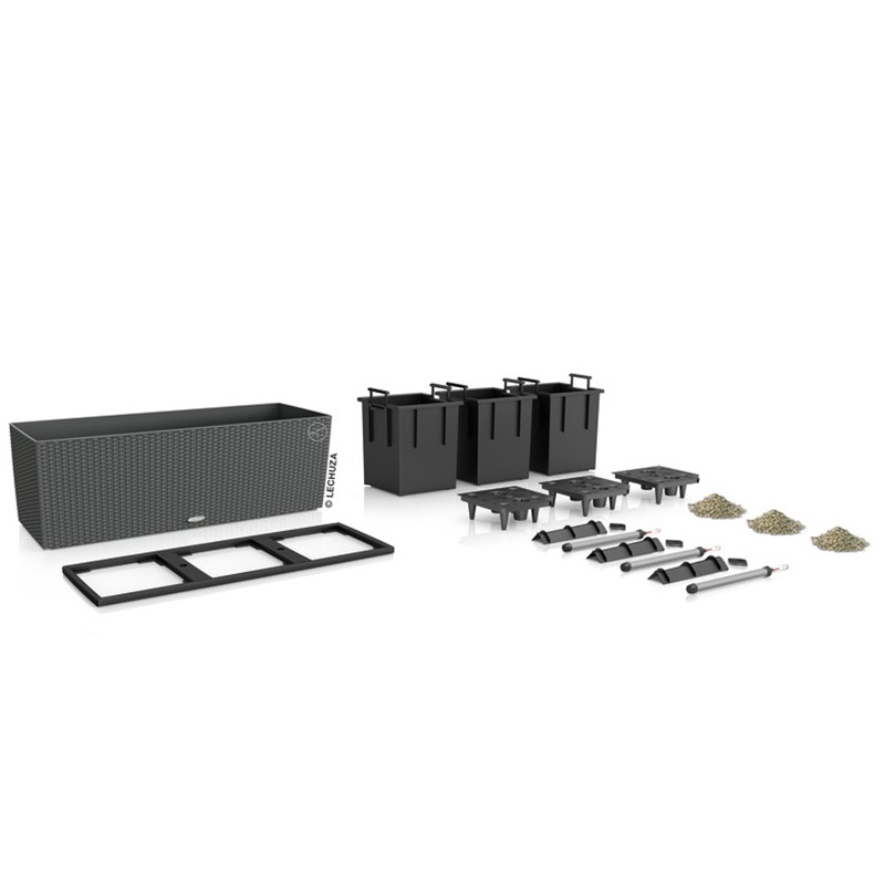 LECHUZA Trio 40 Cottage Ζαρντινιέρα 129.5x42x44cm Αυτοποτιζόμενη με 3 Κάδους Φύτευσης Ανθρακί RATTAN Γερμανίας