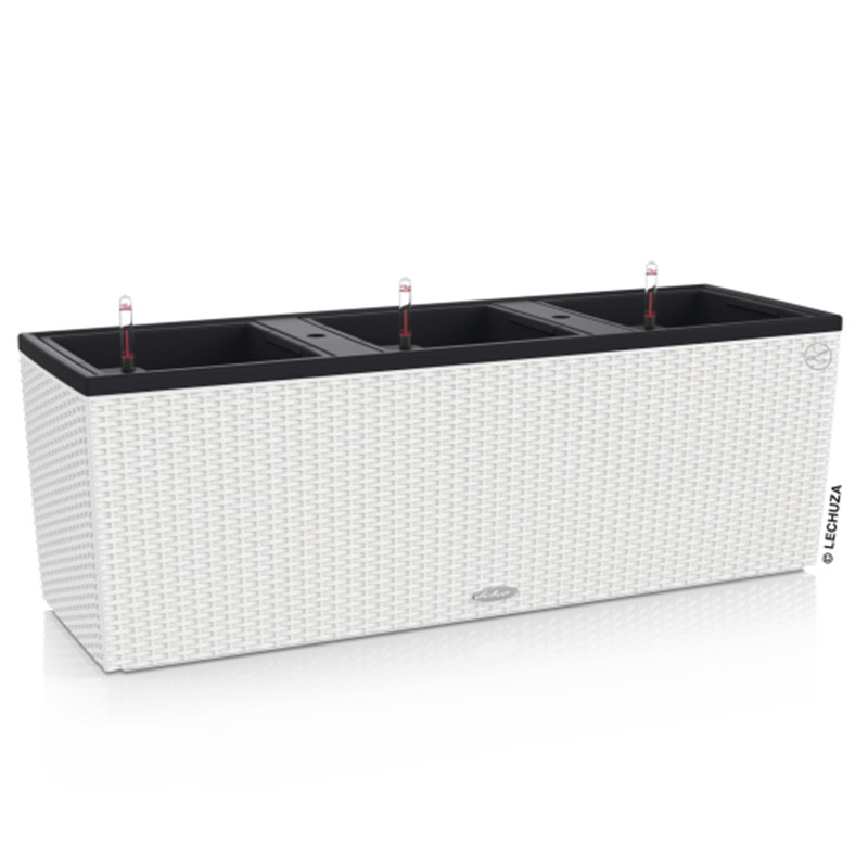 LECHUZA Trio 40 Cottage Ζαρντινιέρα 129.5x42x44cm Αυτοποτιζόμενη με 3 Κάδους Φύτευσης Λευκή RATTAN Γερμανίας