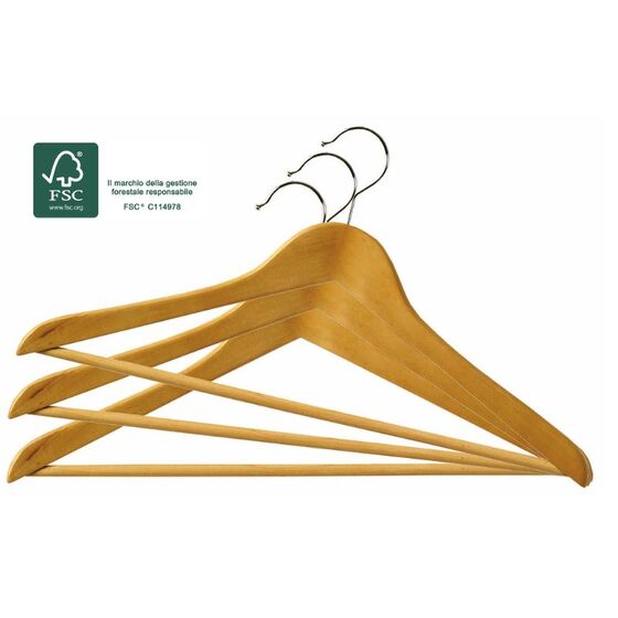 Σετ κρεμάστρας ρούχων κατασκευασμένη από οικολογικό ξύλο που φέρει πιστοποίηση FSC (διεθνής μη κερδοσκοπική εταιρεία για την προστασία του περιβάλλοντος) με μεταλλικό γάντζο.