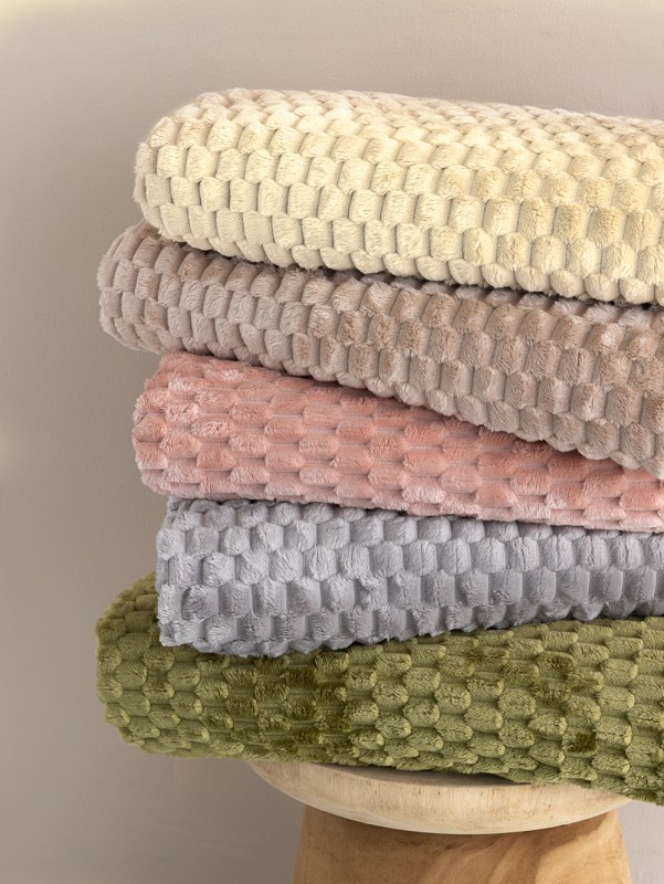 Κουβέρτα Υπέρδιπλη 220x240 ASTER από ύφασμα 100% waffle jacquard flannel 350 γραμμαρίων ανά m², αφράτη, μαλακή και απαλή υφή, προσφέροντας ζεστασιά το χειμώνα. Διατίθεται σε 6 αποχρώσεις.