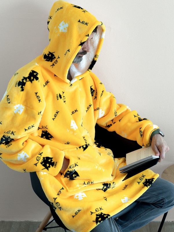 Κουβέρτα AEK με μανίκια και κουκούλα από ύφασμα 100% flannel fleece στη μία πλευρά, γούνα sherpa στην άλλη, 90x100, one size, ζεστό, κατάλληλο για τους χειμερινούς μήνες.