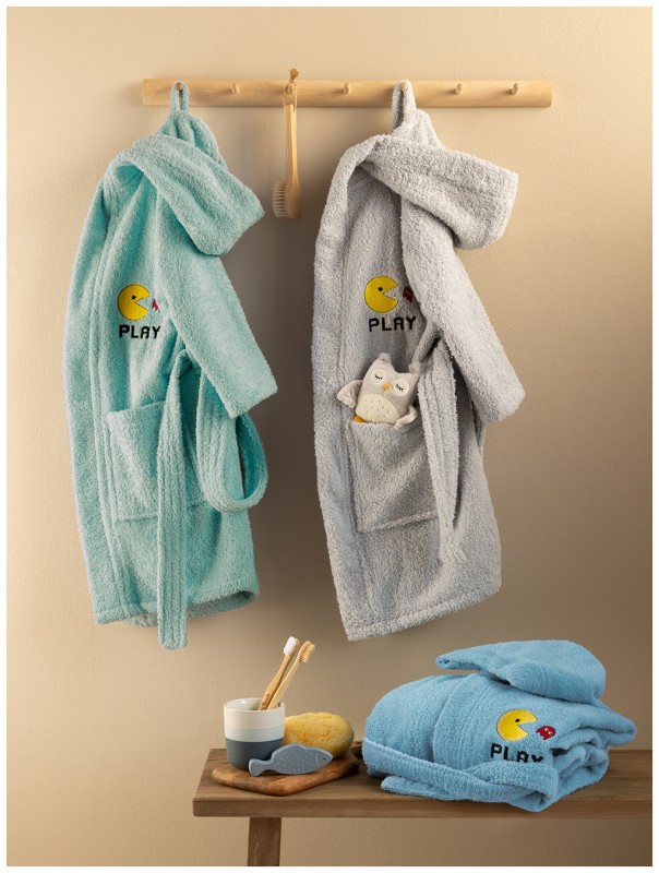Μπουρνούζι Kids Bath PAC με κεντητές παιδικές παραστάσεις από 100% βαμβακερό ύφασμα με κέντημα 380 γραμμαρίων ανά m².