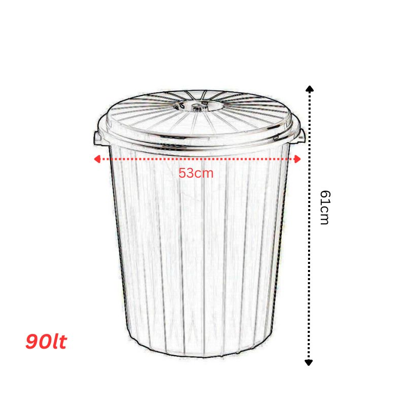 Δοχείο απορριμμάτων χωρητικότητας 90 λίτρων, κατασκευασμένο από πλαστικό υψηλής αντοχής, ανθεκτικό στο χρόνο και στις καιρικές συνθήκες. Διαθέτει αποσπώμενο καπάκι και πλαστικές χειρολαβές που καθιστούν την μετακίνηση του εύκολη.