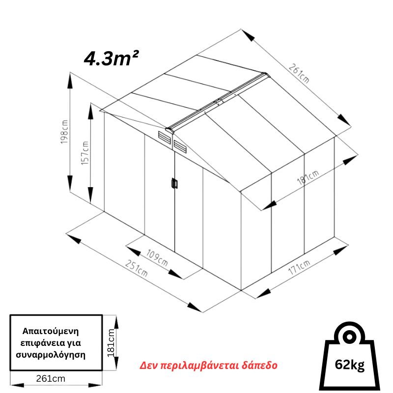 STEELEN Μεταλλική Αποθήκη Κήπου - Σπιτάκι Κήπου 261x181x198 (8.6'x6') 4.3m² Γαλβανιζέ Polis Γκρι