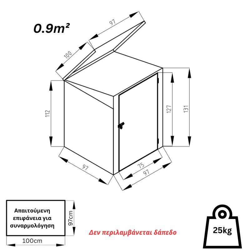 Μεταλλική αποθήκη κήπου Polly A κατασκευασμένη από ηλεκτρογαλβανισμένο εν θερμώ χάλυβα (HDG Steel)βαμμένο με ειδική πολυεστερική βαφή, που παρέχει μέγιστη αντιδιαβρωτική προστασία και διάρκεια ζωής. Απόλυτα ανθεκτική κατασκευή χάρη στις ισχυρές της δοκούς από ηλεκτογαλβανισμένο εν θερμώ ψευδάργυρο, με υψηλή αντοχή στις ακραίες καιρικές συνθήκες. Διαθέτει ανοιγόμενη πόρτα προς τα έξω για άνετη πρόσβαση με σύρτη κλειδώματος της πόρτας με ενσωματωμένη υποδοχή για κλειδαριά ασφαλείας και ανοιγόμενη οροφή προς τα επάνω με μεταλλικές αντιρρίδες που σταθεροποιούν την οροφή στο μέγιστο σημείο προσφέροντας μεγαλύτερη ασφάλεια. Η επικλινής ενισχυμένη σκεπή της εξασφαλίζει την απορροή των οβρίων υδάτων και του χιονιού. Ιδανική για αποθήκευση επίπλων κήπου, εργαλείων κηπουρικής, ποδήλατα, είδη αθλητικού και θαλάσσιου εξοπλισμού κ.α Μεγάλο πλεονέκτημά της είναι ότι δεν παραδίδεται συναρμολογημένη, αλλά σε μορφή επίπεδων πακέτων, ώστε να καταλαμβάνει τον ελάχιστο δυνατό όγκο και να μεταφέρεται με τον πιο εύκολο και οικονομικό τρόπο. Περιλαμβάνονται αναλυτικές οδηγίες συναρμολόγησης. Συνιστάται η συναρμολόγηση του προϊόντος σε ευθεία και στέρεη επιφάνεια. (Δεν περιλαμβάνεται δάπεδο).