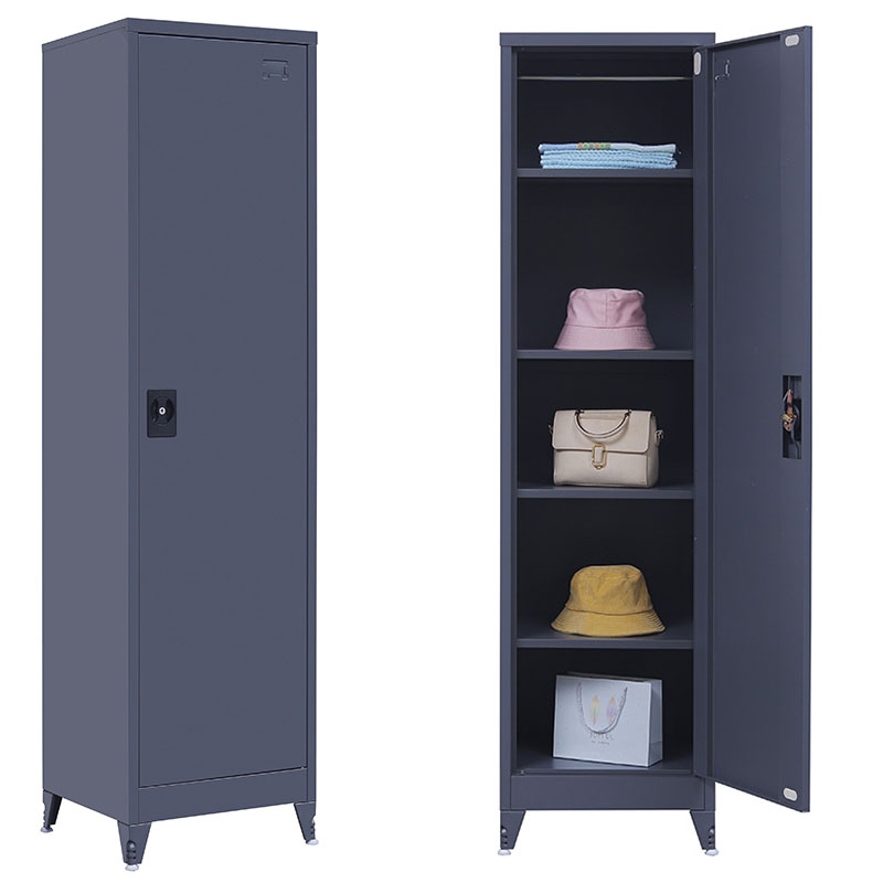 Διαθέτει 4 μεταλλικά ράφια που ορίζουν 5 αποθηκευτικούς χώρους, πάτωμα με πλευρική και κεντρική ενίσχυση, μεταλλικούς μεντεσέδες και γαλβανιζέ πίρους σε μη εμφανή σημεία. Υπάρχει δυνατότητα χρήσης του προϊόντος και ως ντουλάπα για ρούχα, αν αφαιρεθούν τα ράφια της, χάρη στην ανοξείδωτη ράβδο στήριξης που διαθέτει στο πάνω μέρος. Διαθέτει κλειδαριά ασφαλείας που δεν προεξέχει, και ρυθμιζόμενα πόδια για μεγαλύτερη ευστάθεια.