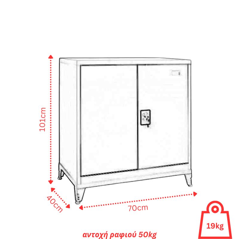 STEELEN Μεταλλική Ντουλάπα 70x40x101cm Πάχους 0.6mm/0.8mm (πάτωμα) Γαλβανιζέ με 2 Ράφια και Ρυθμιζόμενα Πόδια - 3 Αποθηκευτικοί Χώροι