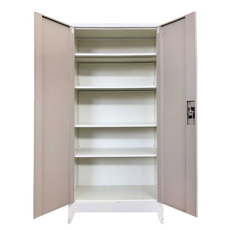 Διαθέτει 4 εσωτερικά μεταλλικά ράφια που ορίζουν 5 αποθηκευτικούς χώρους, πάτωμα με πλευρική και κεντρική ενίσχυση, μεταλλικούς μεντεσέδες και γαλβανιζέ πίρους σε μη εμφανή σημεία, κλειδαριά ασφαλείας με 2 αντικλείδια και ρυθμιζόμενα πόδια που εξυπηρετούν στην καλύτερη ευστάθεια της ντουλάπας. Τα 4 εσωτερικά ράφια τοποθετούνται πάνω σε κλιπς ώστε να μπορούν να αντικατασταθούν εύκολα ενώ υπάρχει δυνατότητα τοποθέτησης περισσότερων ραφιών.