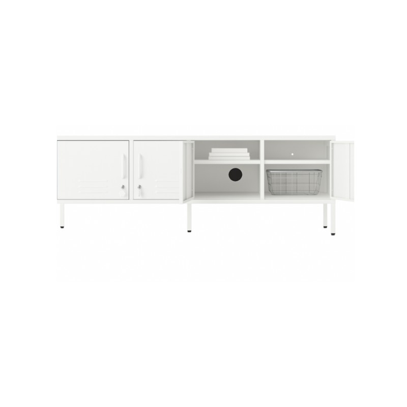 STEELEN COLOR Μεταλλικό Ντουλάπι -Έπιπλο Τηλεόρασης 160x45x55cm Πάχους 0.7mm Εσωτερικού Χώρου με Πόδια Cotton White