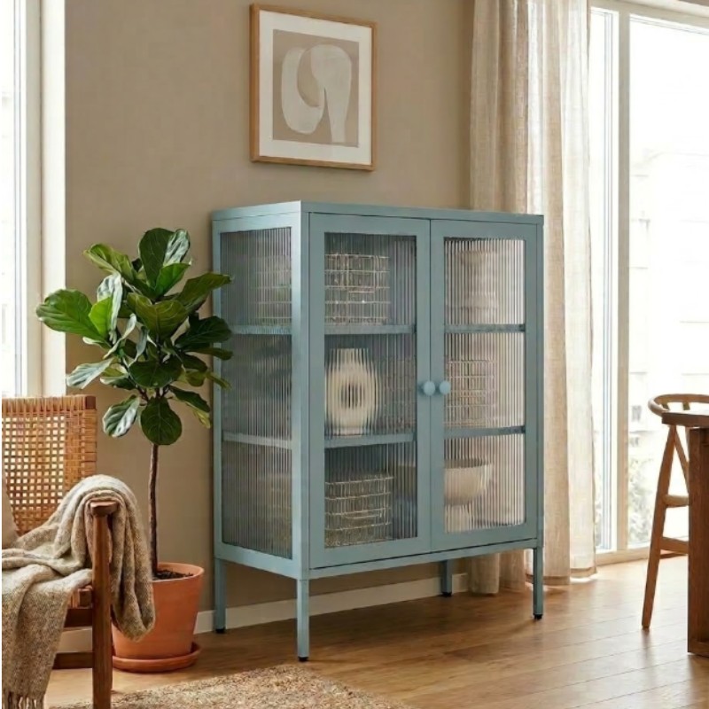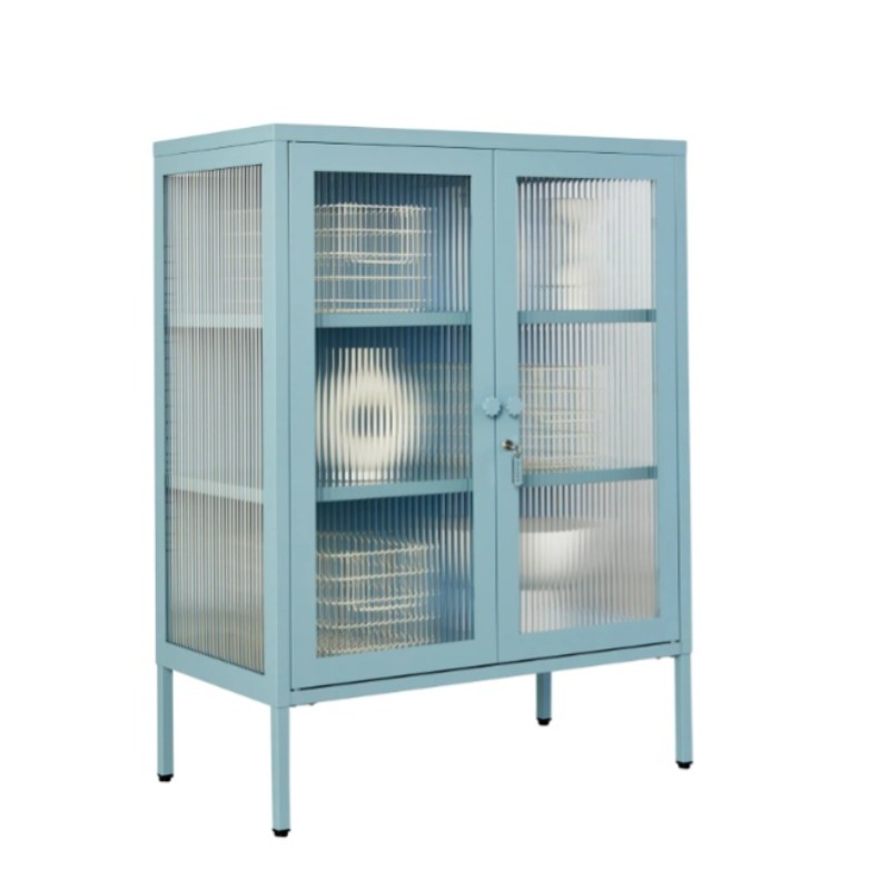 STEELEN COLOR Μεταλλική Ντουλάπα 80x40x90cm Πάχους 0.8mm Εσωτερικού Χώρου με Τζάμι και Πόδια Baby Blue
