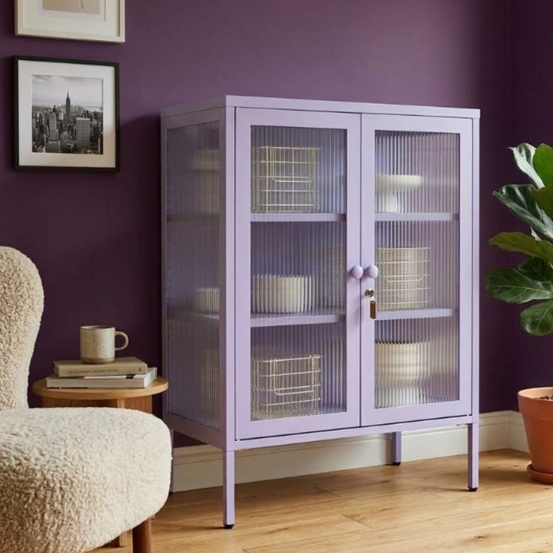STEELEN COLOR Μεταλλική Ντουλάπα 80x40x90cm Πάχους 0.8mm Εσωτερικού Χώρου με Τζάμι και Πόδια Lilac