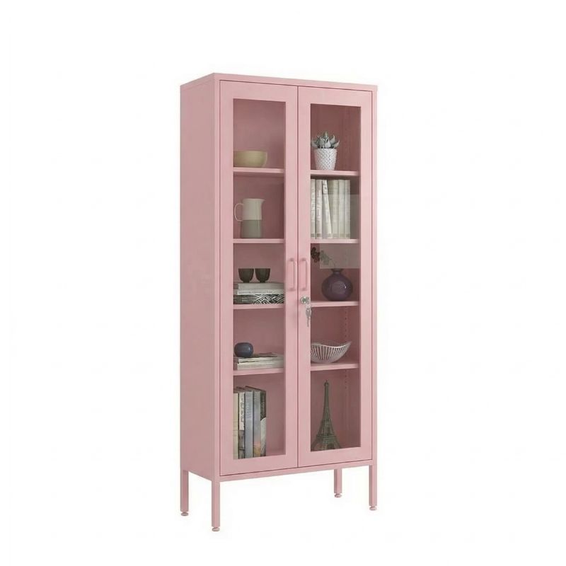 STEELEN COLOR Μεταλλική Ντουλάπα -Βιβλιοθήκη 80x35x190cm Πάχους 0.8mm Εσωτερικού Χώρου με Τζάμι και Πόδια Baby Pink