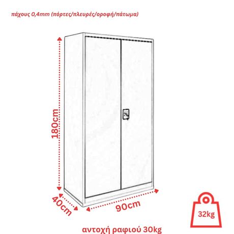 STEELEN LITE Μεταλλική Ντουλάπα 90x40x180cm Πάχους 0.4m με 4 Ράφια ΧΩΡΙΣ ΠΟΔΙΑ - 5 Αποθηκευτικοί Χώροι