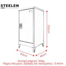 STEELEN LITE Μεταλλική Ντουλάπα Βάρος 13kg 50x45x101cm Πάχους 0.4mm με Εσωτερικό Ράφι και Ρυθμιζόμενα Πόδια - 2 Αποθηκευτικοί Χώροι Ανθρακί Ματ