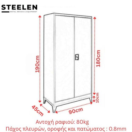 STEELEN Μεταλλική Ντουλάπα 90x45x190cm Πάχους 0.8mm Γαλβανιζέ με 4 Ράφια και Ρυθμιζόμενα Πόδια - 5 Αποθηκευτικοί Χώροι