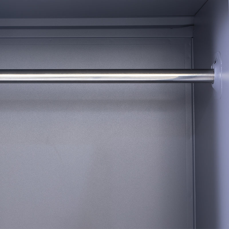 Τρίφυλλη μεταλλική ντουλάπα - ιματιοθήκη κατασκευασμένη εξ'ολοκλήρου από μέταλλο βαμμένο με ηλεκτροστατική βαφή.