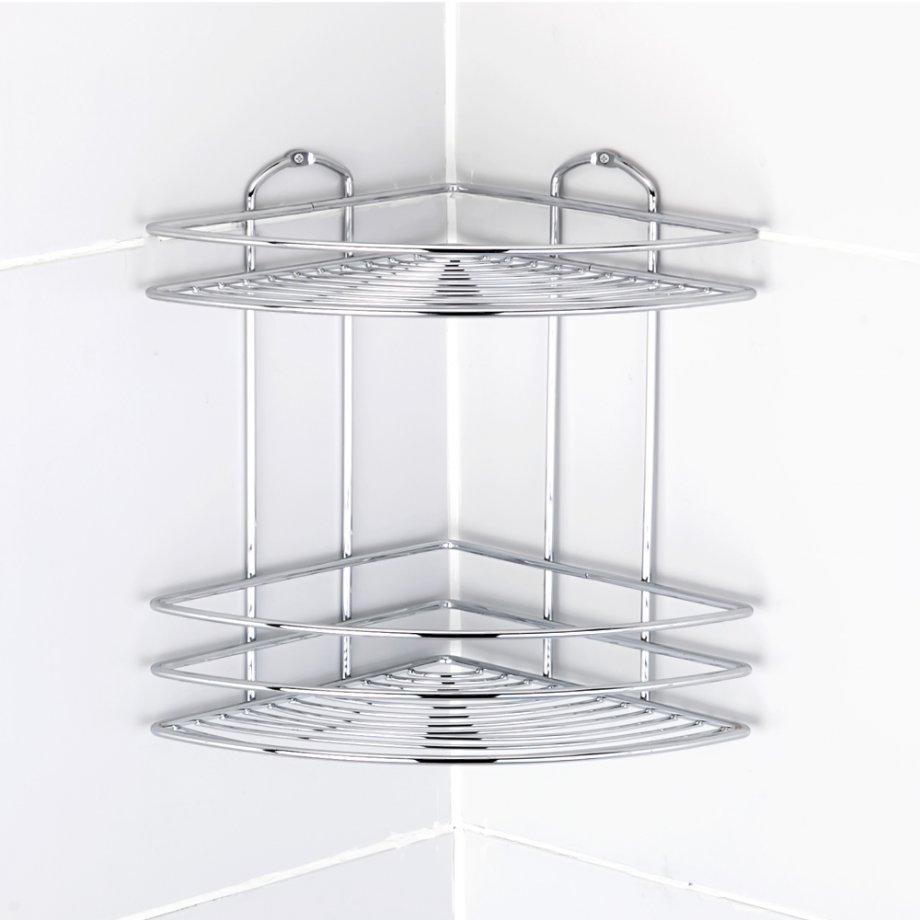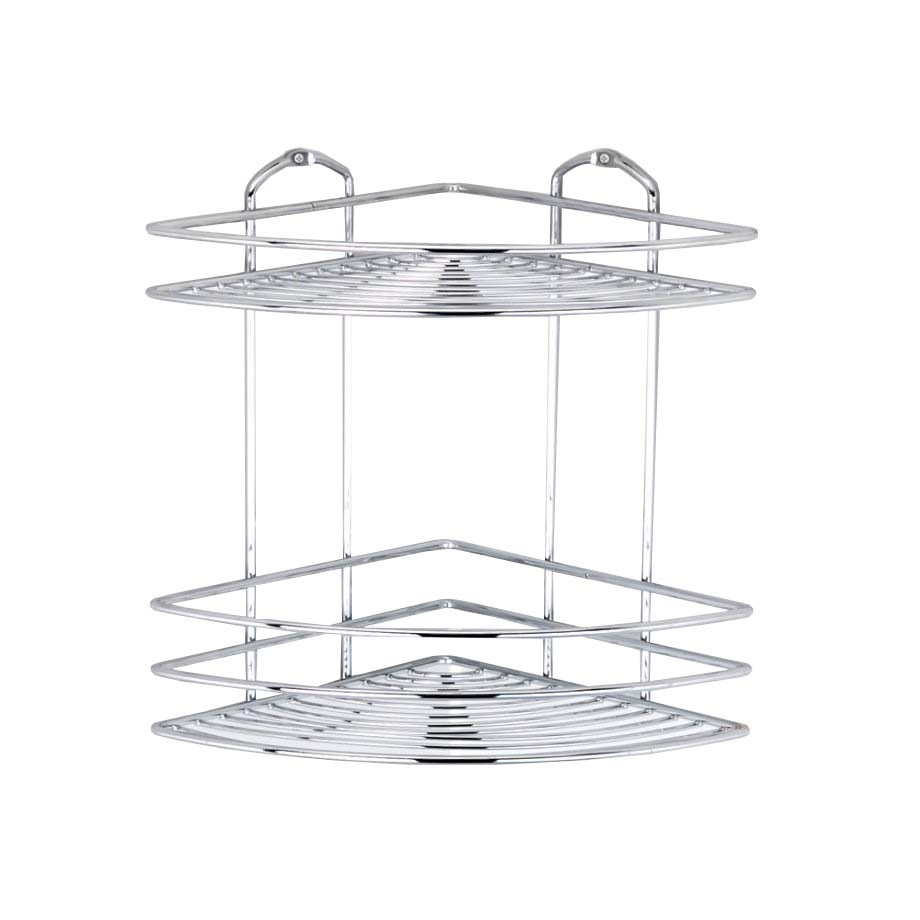 Γωνιακή εταζέρα τοίχου μπάνιου με 2 ράφια για αφρόλουτρα. σαμπουάν κ.α είδη υγιεινής, κατασκευασμένη εξ'ολοκλήρου από ανοξείδωτο ατσάλι (INOX). Πρακτική λύση για το μπάνιο, μπορεί να τοποθετηθεί σε οποιαδήποτε γωνία και να λειτουργήσει ως βοηθητικός ή αποθηκευτικός χώρος. Ιδανικό σε περιπτώσεις που η εξοικονόμηση χώρου είναι σημαντική.